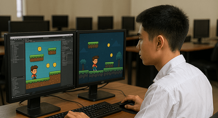 Ekstrakurikuler Game Developer adalah tempat bagi siswa yang tertarik dalam dunia pembuatan game, baik dari sisi desain, logika, maupun pemrograman. Di sini, siswa akan belajar dasar-dasar membuat game mulai dari ide kreatif, pembuatan karakter, hingga menyusun kode agar game dapat dimainkan. Menggunakan software yang ramah pemula dan bimbingan dari pembina, siswa diajak untuk membuat game sederhana hingga level yang lebih kompleks. Kegiatan ini mendorong kreativitas, pemecahan masalah, serta kerja tim. Bagi kamu yang ingin membuat game impianmu menjadi nyata, ini adalah tempat yang tepat!